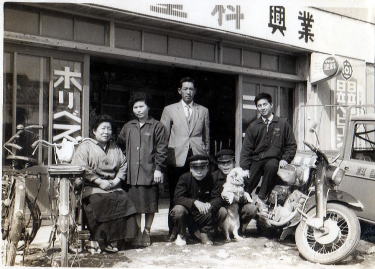 ![]() 営業所時代の父と母と、社員さんたちと、大家さんです。 |